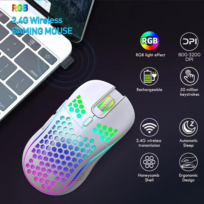 • 6D 7200DPI Optical Sensor RGB Backlight Ergonomic Mice Wireless Gaming Mouse